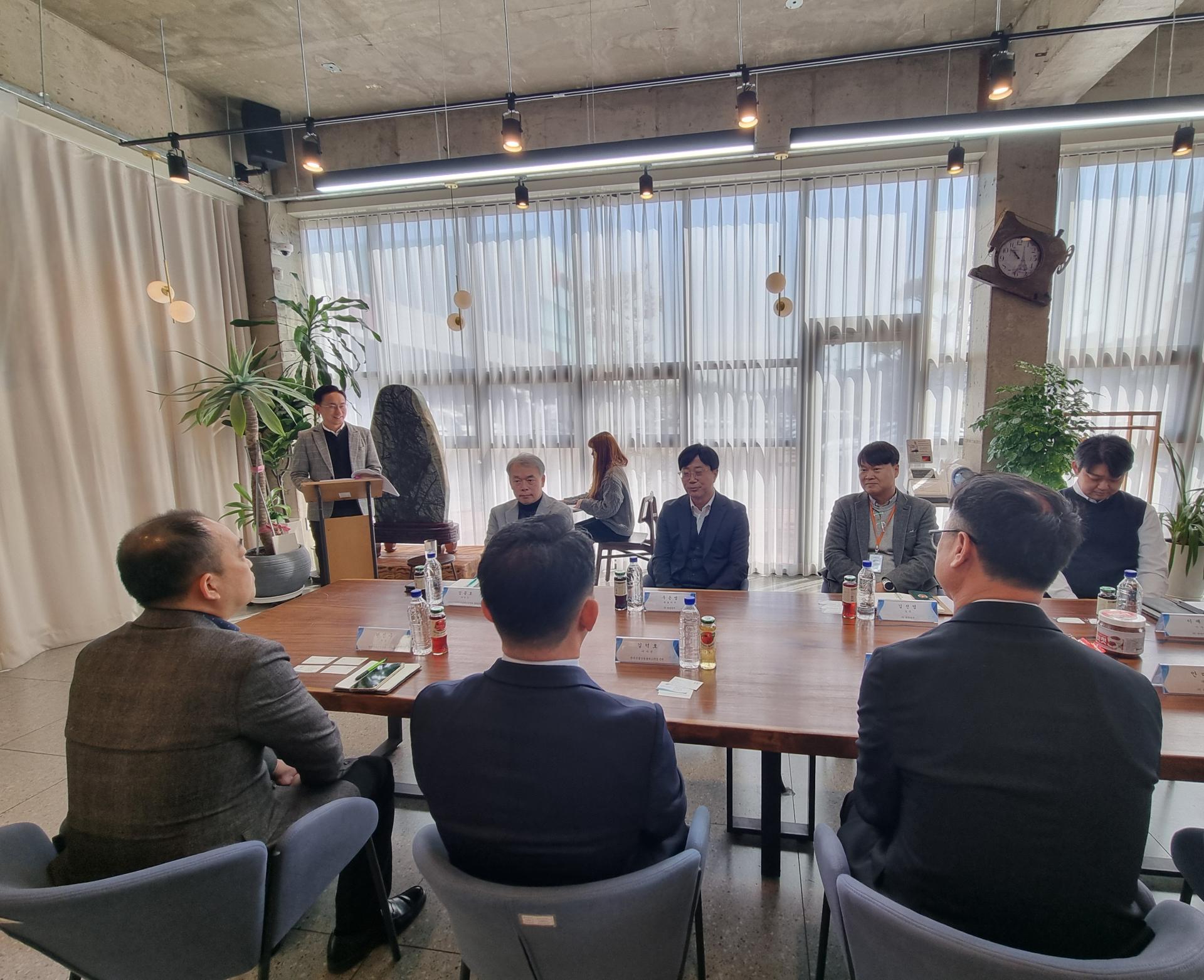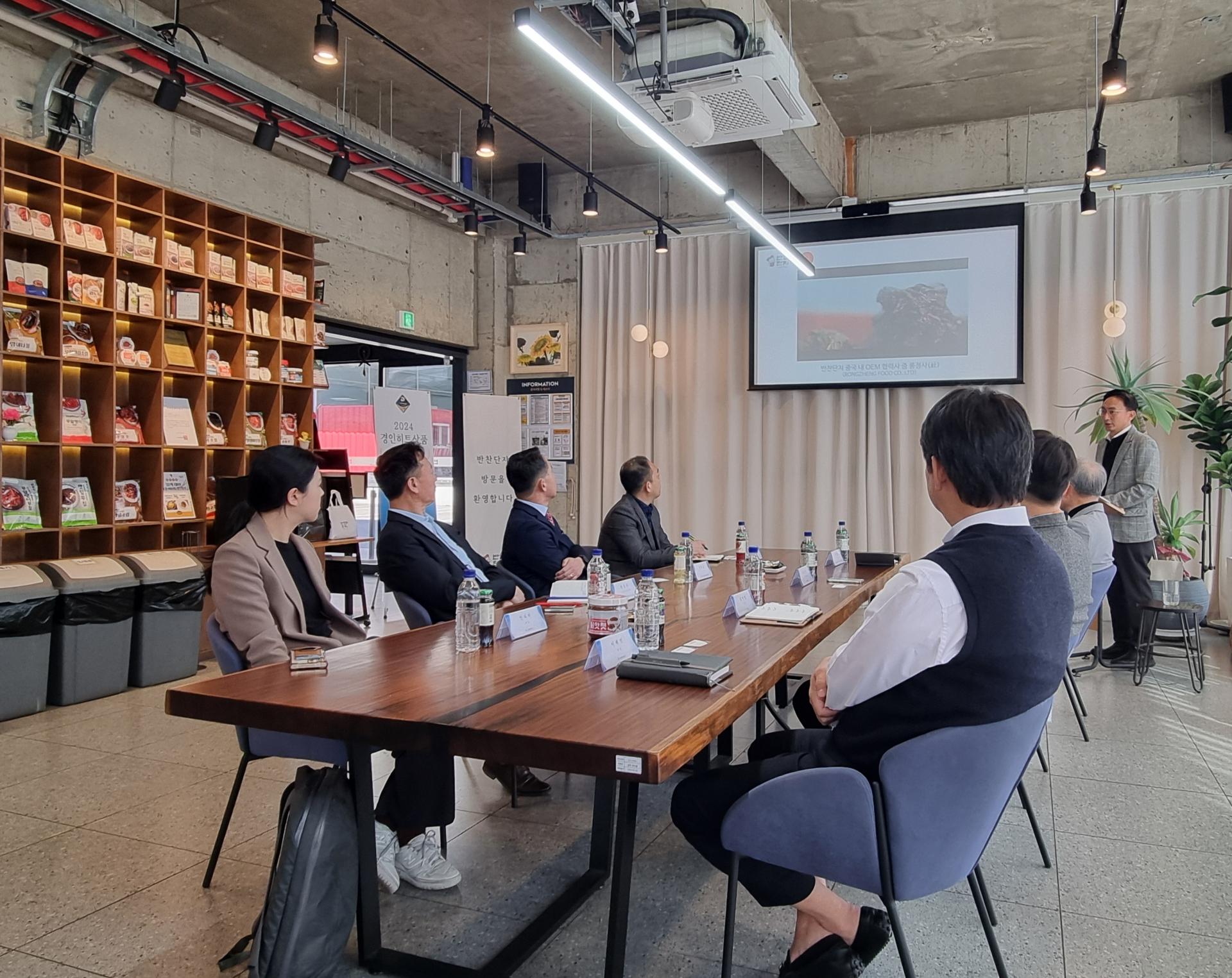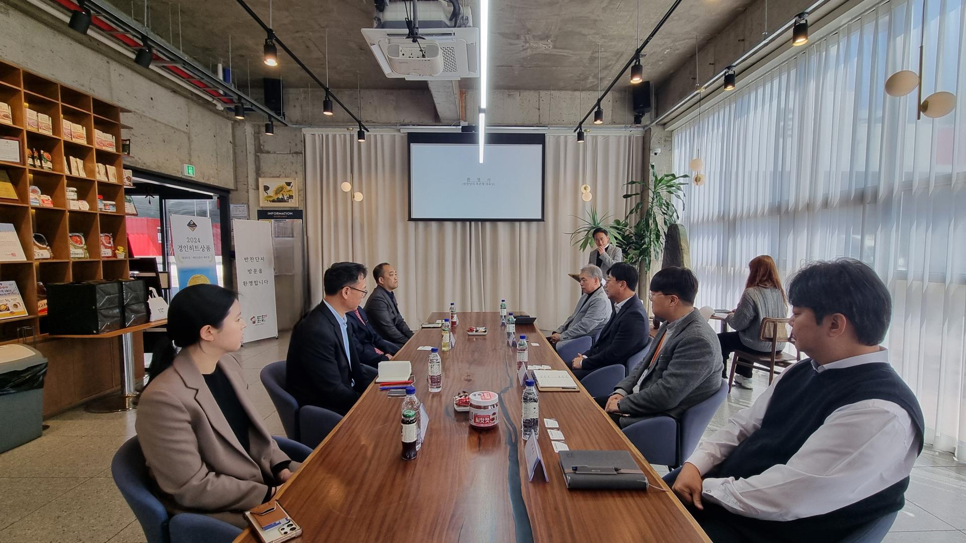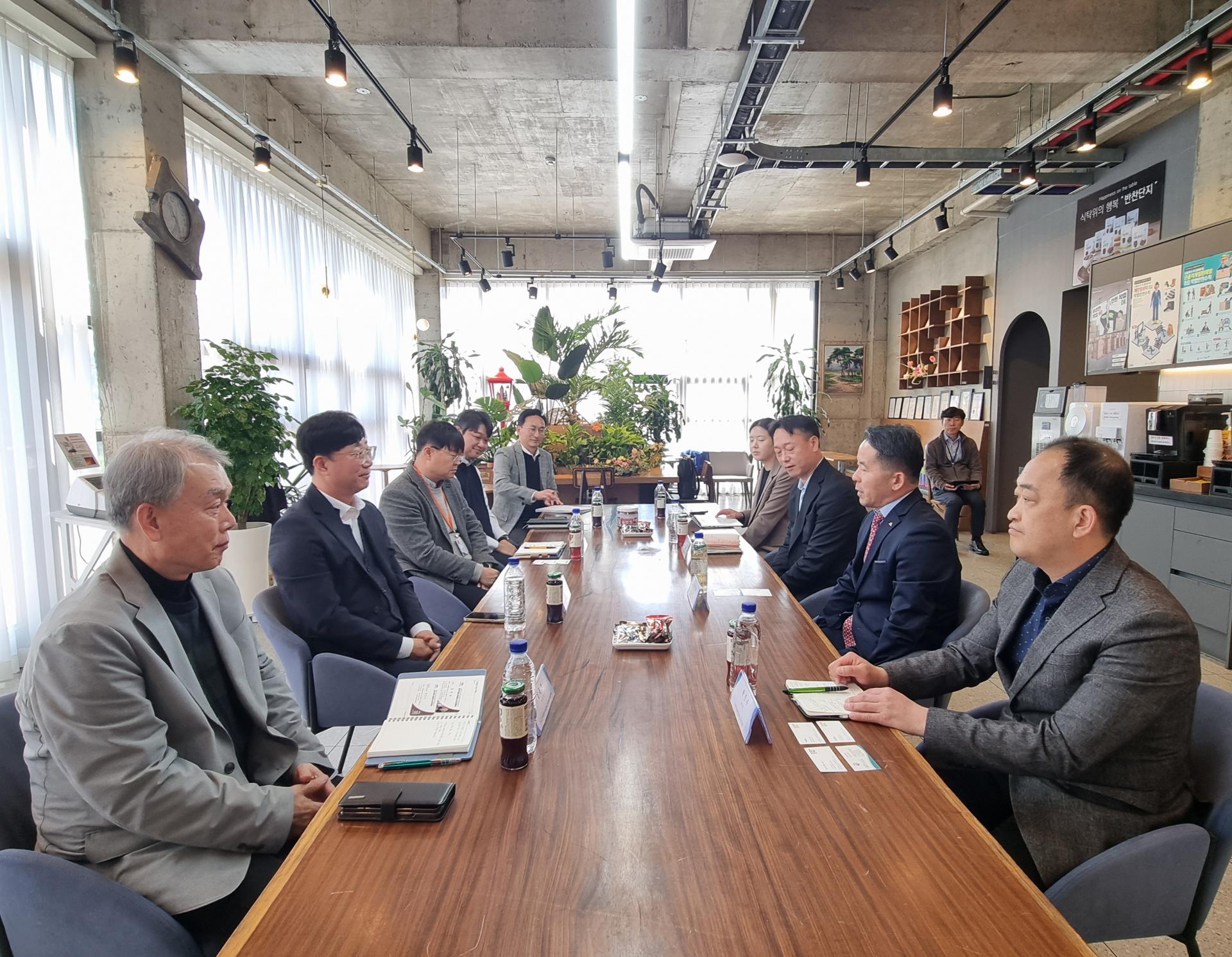 3월 28일(금) 오전 11시 (주)반찬단지에 한국식품산업클러스터진흥원 김덕호 이사장님과 박승수 처장님, 한진수 차장님이 방문하여 연합회와 진흥원 소개 시간과 상호 협력 방안을 위한 간담회를 가졌습니다. 우은명 연합회장님은 식품산업 지원사업에 대해 김덕수 이사장님께 문의하며 다양한 채널을 통해 식품산업이 활성화 될 수 있게 해달라고 요청하셨고 특히, 고령친화 식품에 대한 논의가 심도있게 이루어졌습니다.